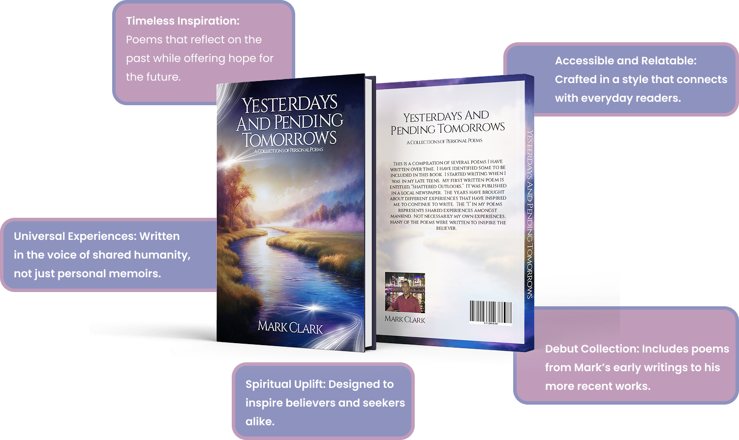 This book is a compilation of poems written by Mark Clark over many years. It reflects shared human experiences, emotions, and spiritual reflections that inspire readers to pause, reflect, and believe.